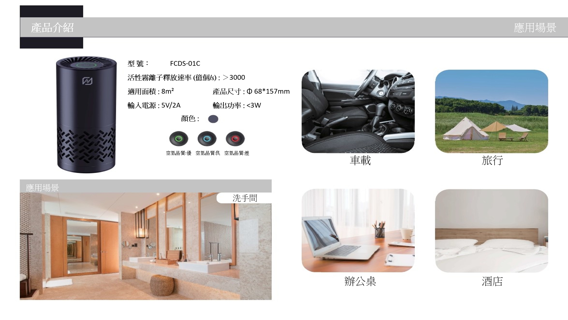 產品用途:適用於轎車等家用車、臥室、酒店客房等環境的空氣消毒。