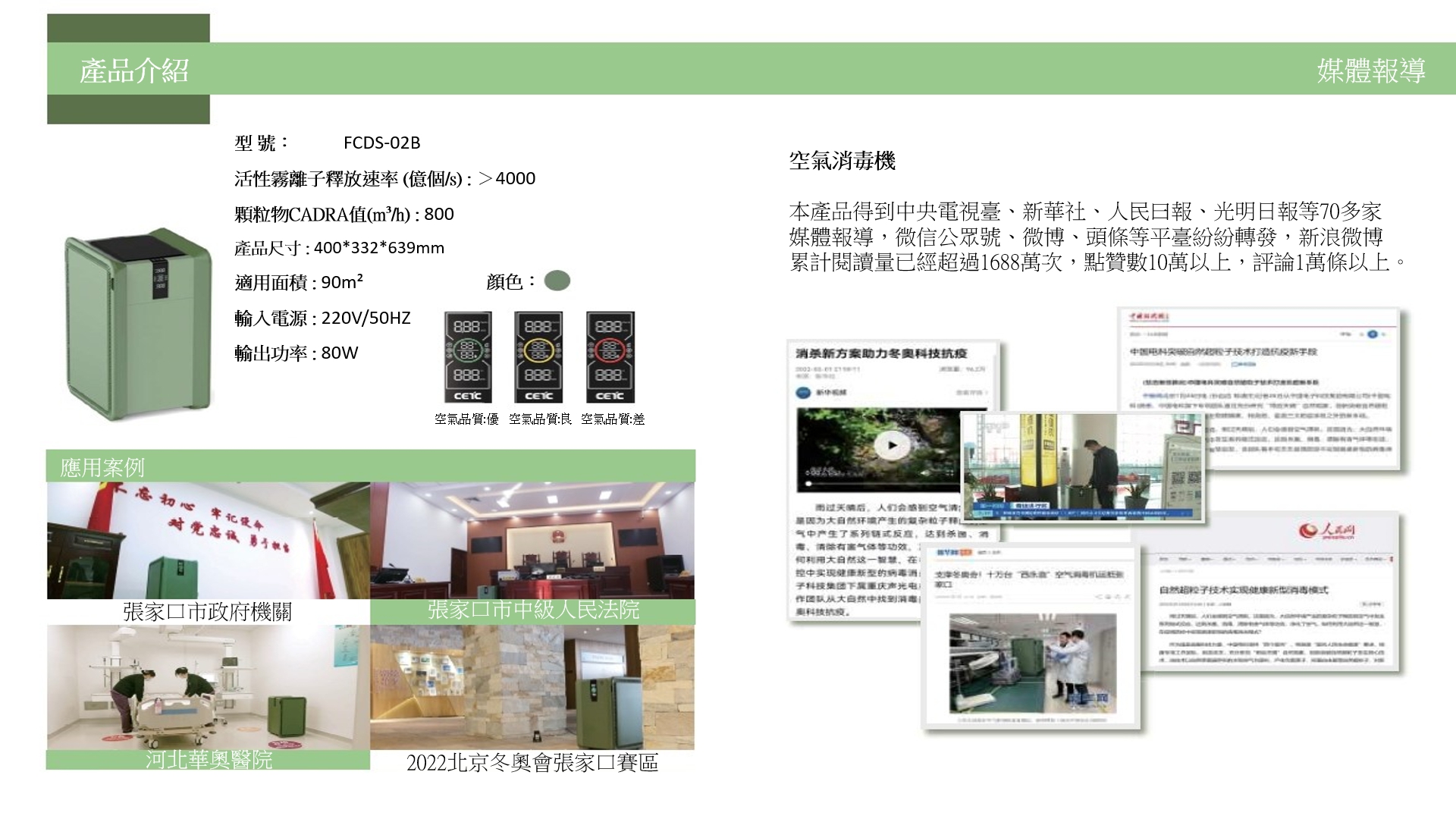 1)在20m3的空間開啟設備工作1小時,對白色葡萄球菌的殺滅率>99.90%;